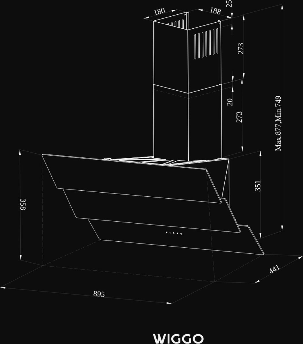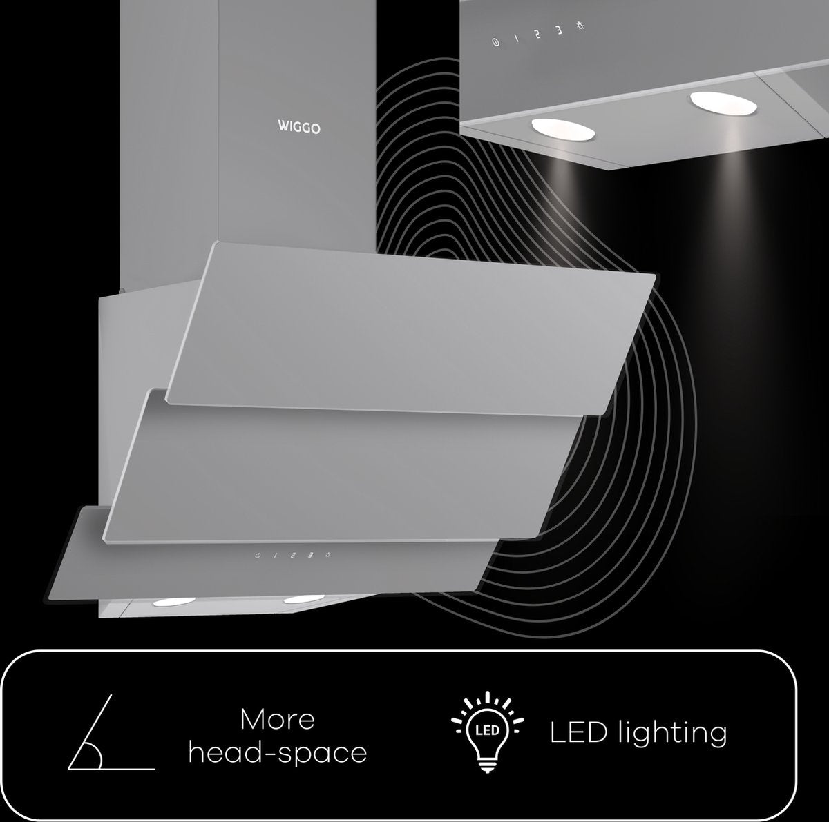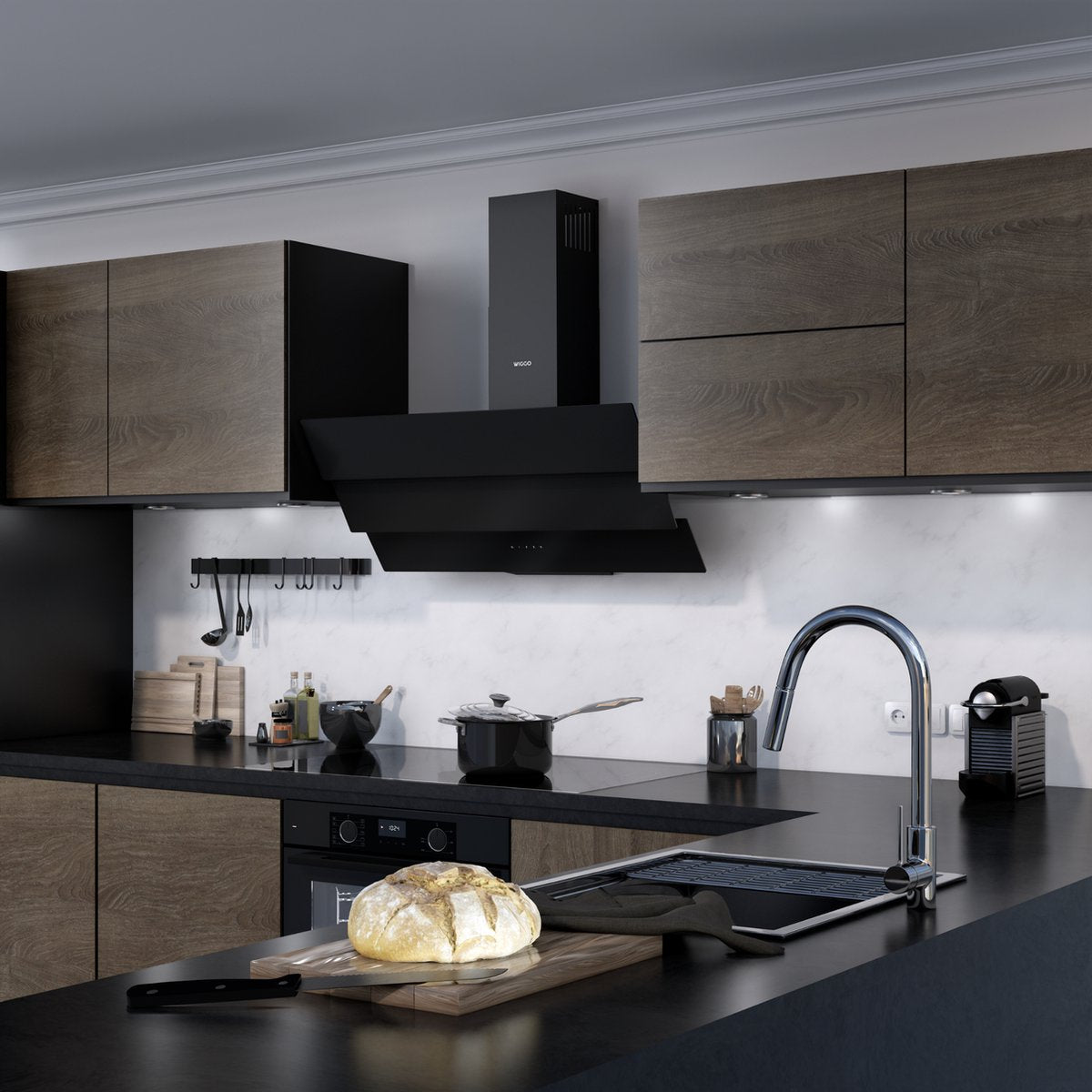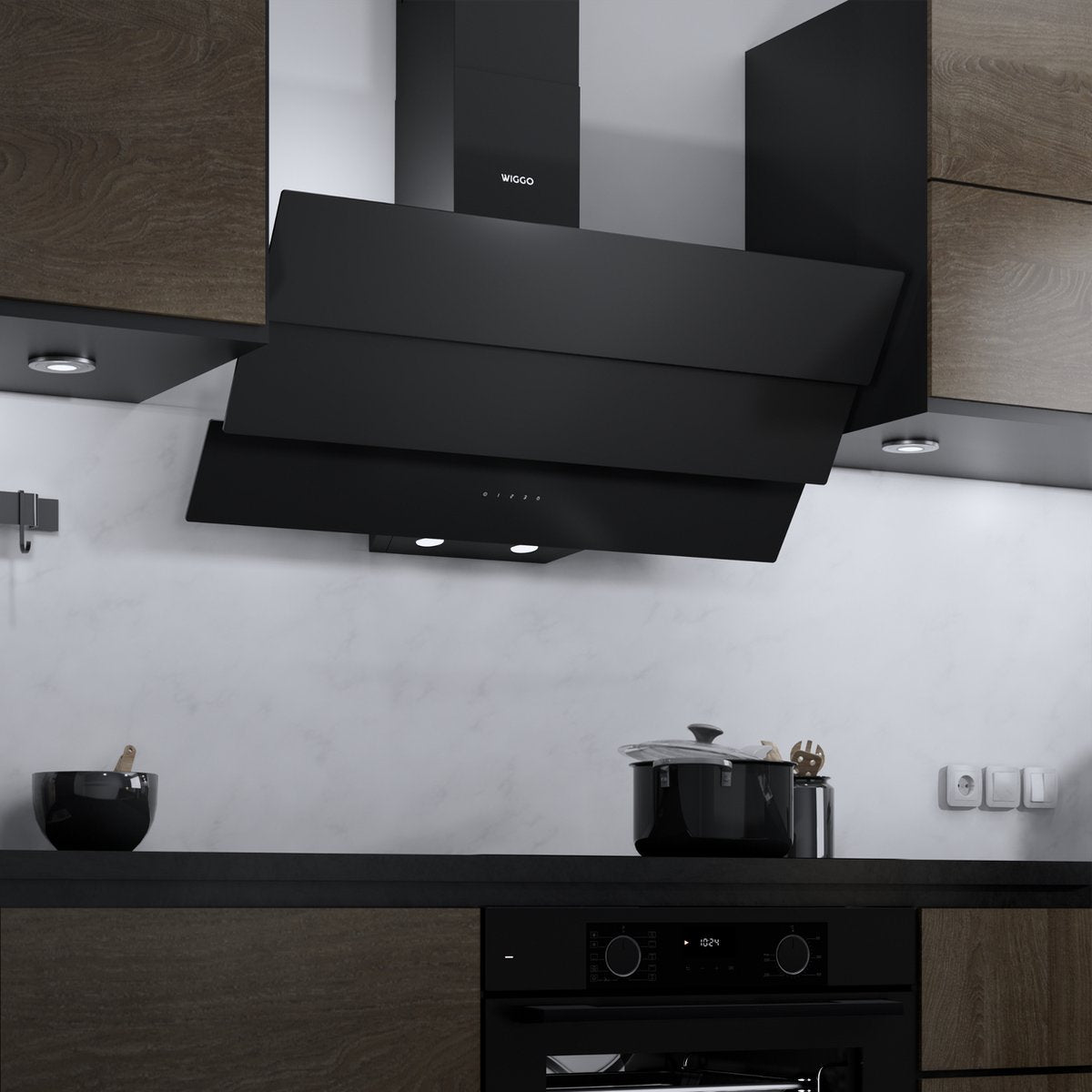 Wiggo WE-B943G(B) – Schuine Afzuigkap 90 cm – Zwart Triple Glas – A+ Energieklasse – Touch Control – Eco+ Design – 5 jaar garantie