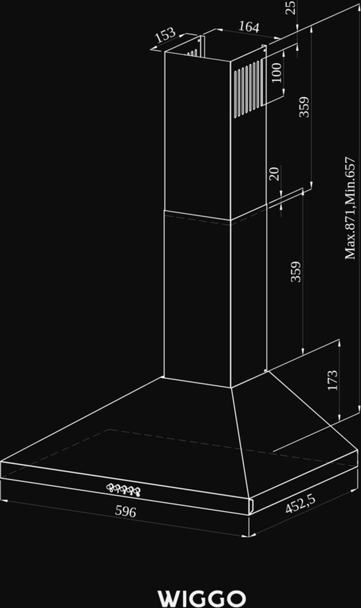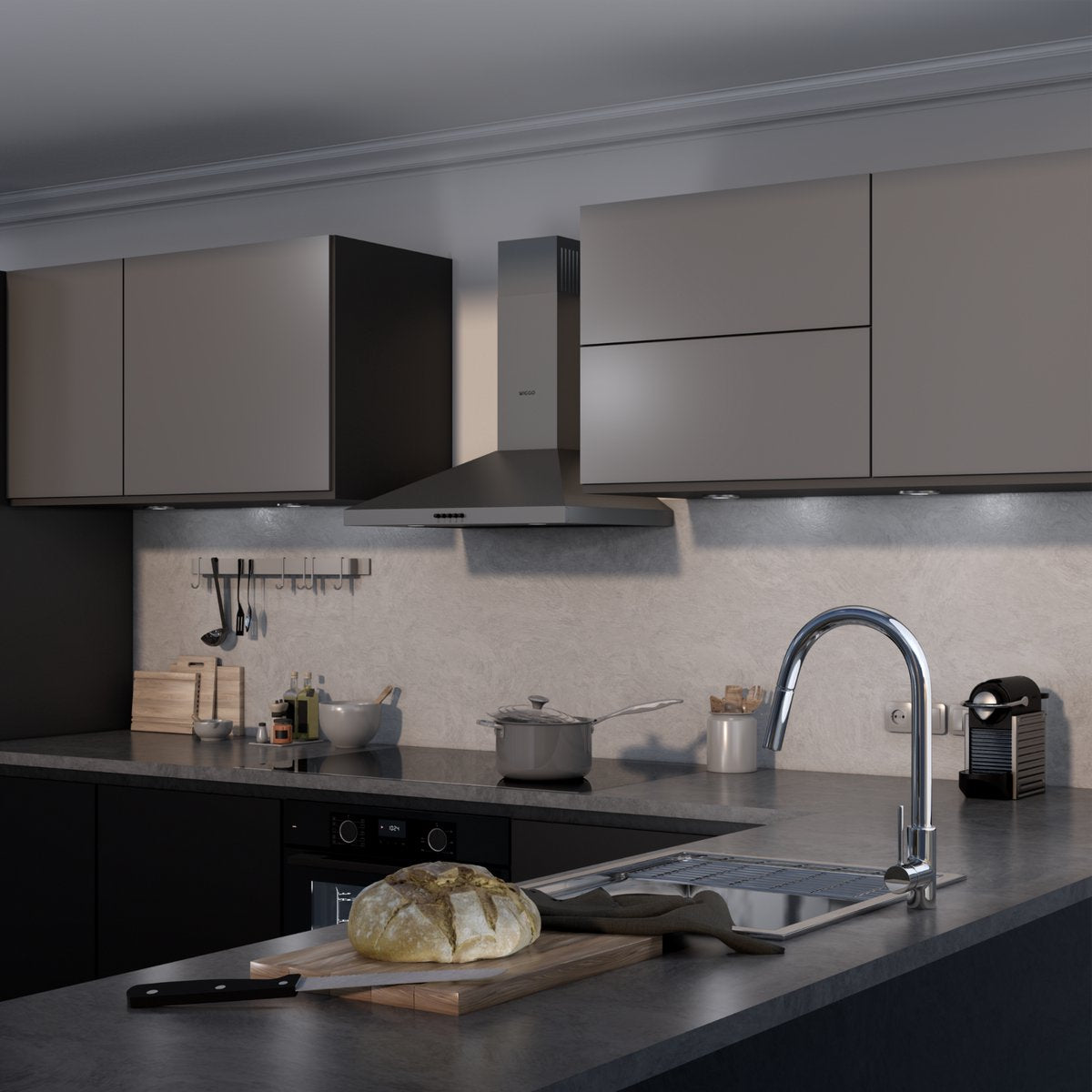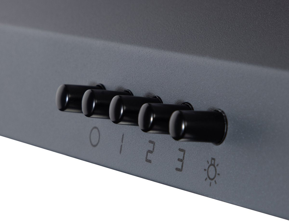 Wiggo WE‑D630P(G) – Wandschouw Afzuigkap 60 cm – Grijs – 300 m³/h – KNeeppenbediening – LED Verlichting – 5 jaar garantie