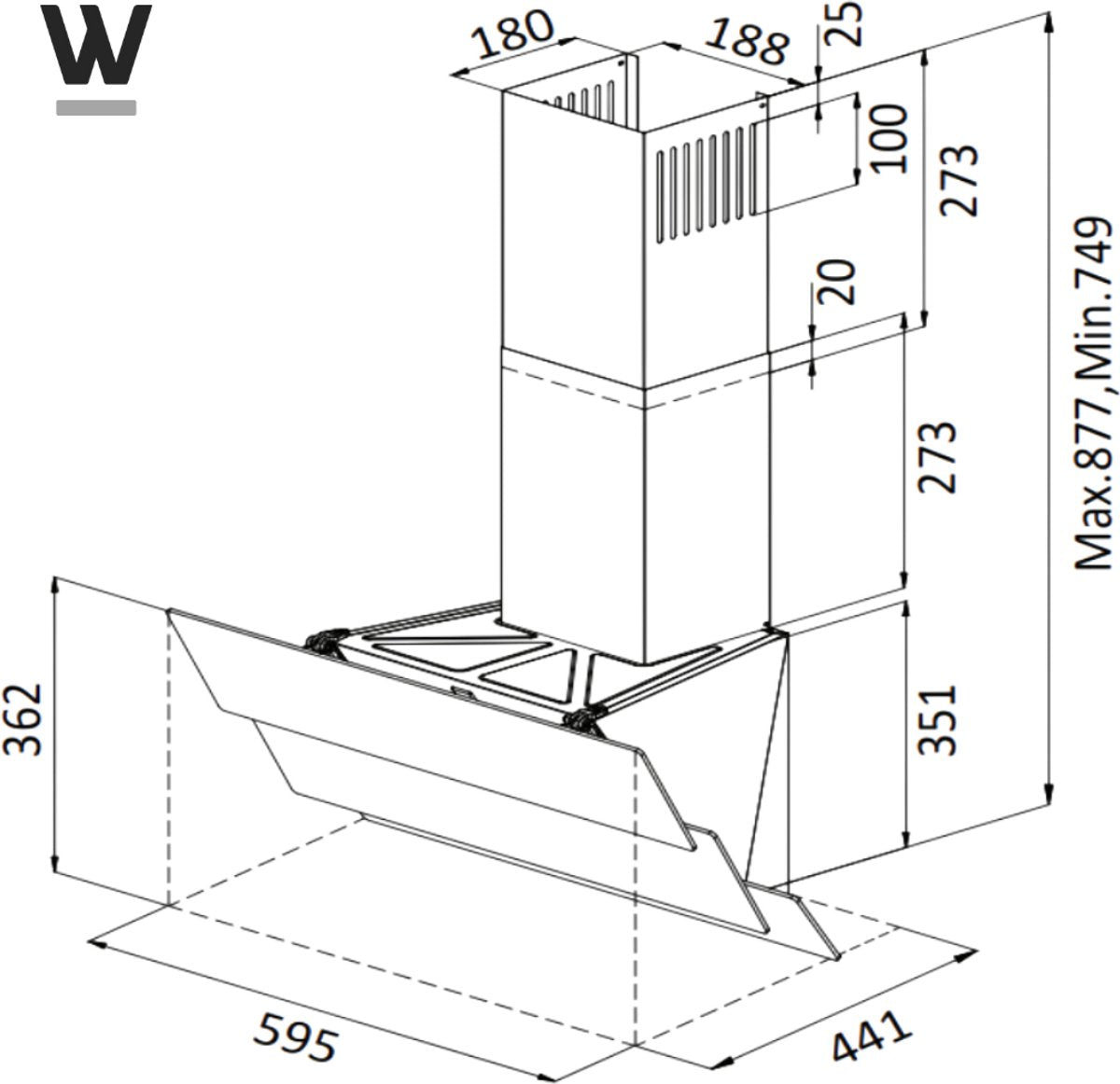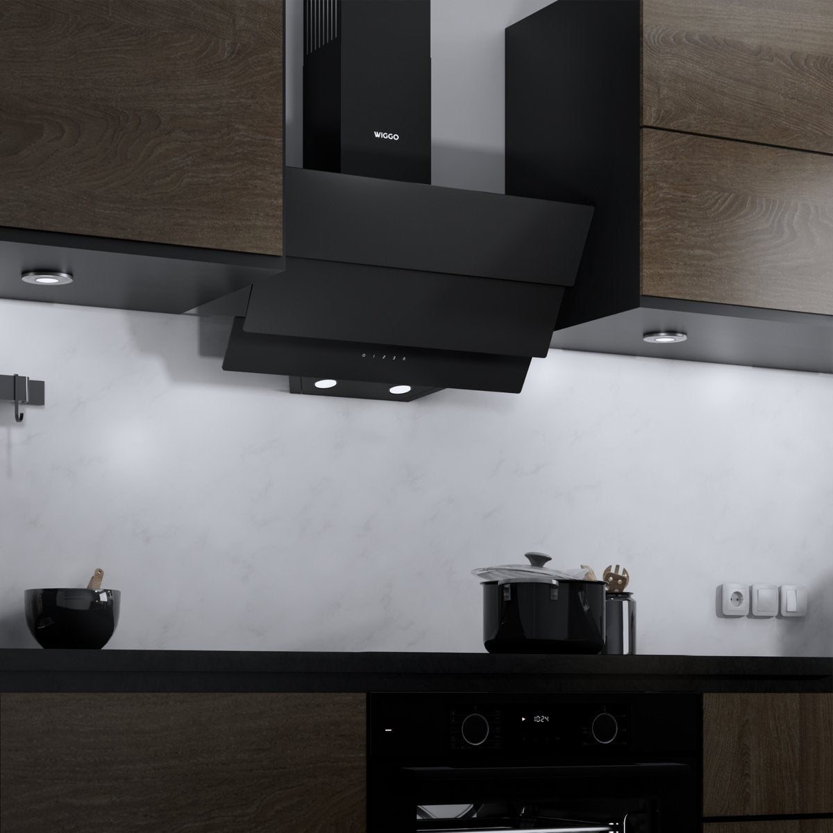 Wiggo WE-D633G(B) – Schuine Afzuigkap 60 cm – Zwart Triple Glas – LED Verlichting – Touch Control – 5 jaar garantie