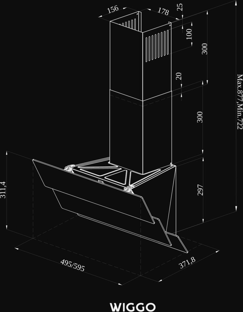 Wiggo WE-D633G(G) – Schuine Afzuigkap 60 cm – Grijs Triple Glas – LED Verlichting – Touch Control – 5 jaar garantie