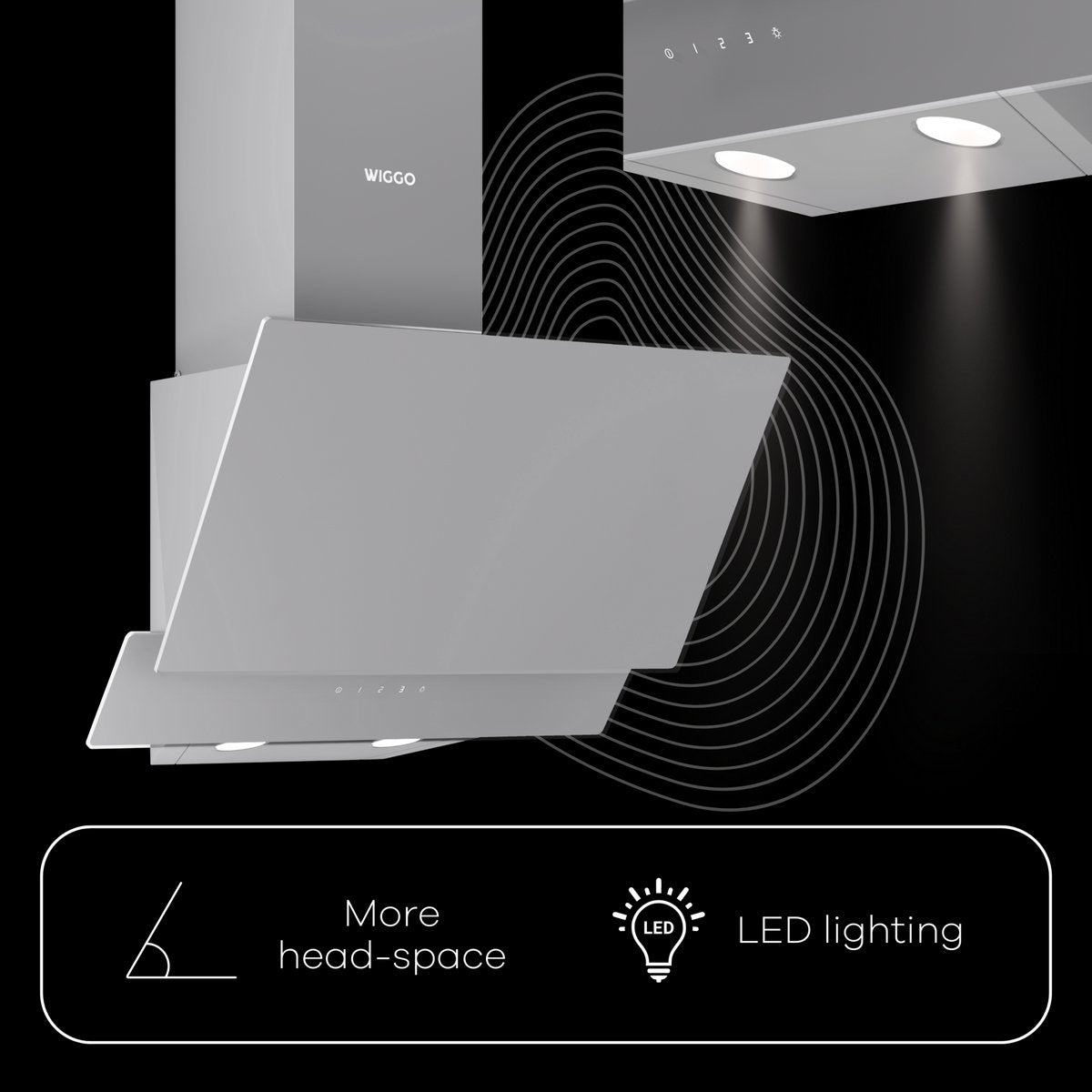 Wiggo WE-E923G(G) Schuine Afzuigkap 90 cm Grijs Dubbel Glas - Esthetisch Ontwerp en Krachtige Afzuiging.