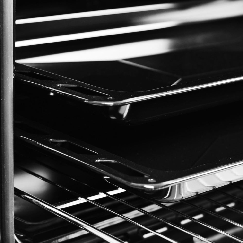 De elektrische oven heeft een netto inhoud van 53 liter, ruim genoeg voor ovenschotels, pizza’s, taarten en braadstukken. De oven is geschikt voor zowel boven- en onderwarmte als hetelucht, zodat gerechten gelijkmatig garen. Met de instelbare temperatuur bereid je elk gerecht precies zoals gewenst.