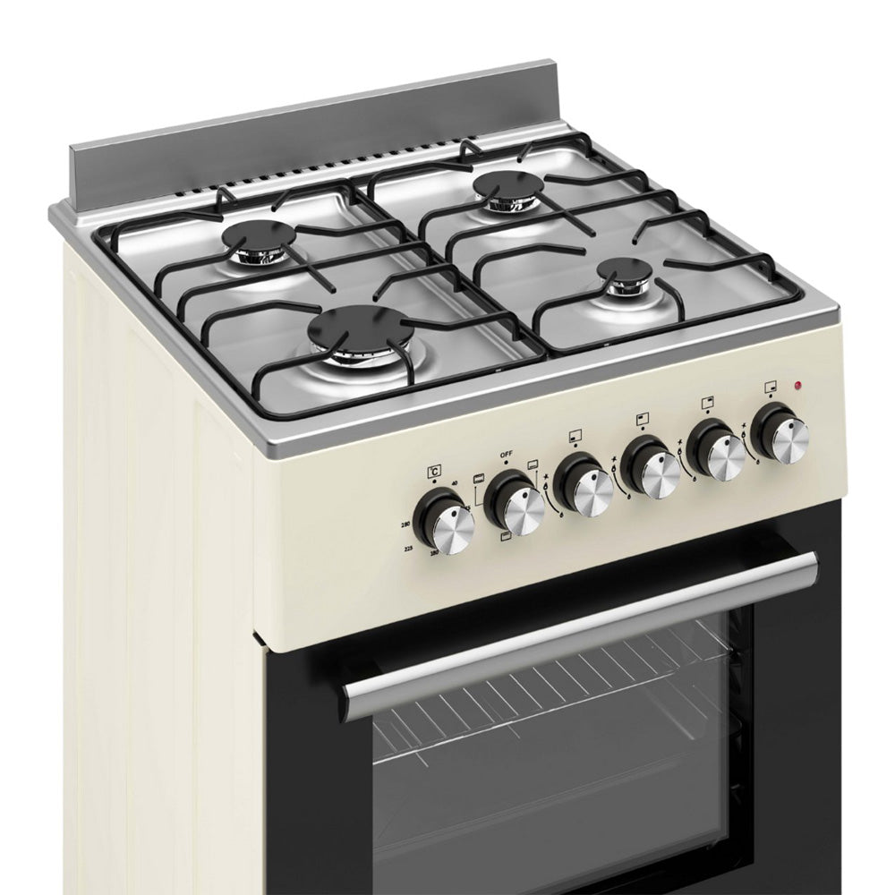 Wiggo WO-E606A – Vrijstaand Gasfornuis met Elektrische Oven (60 cm) – Creme