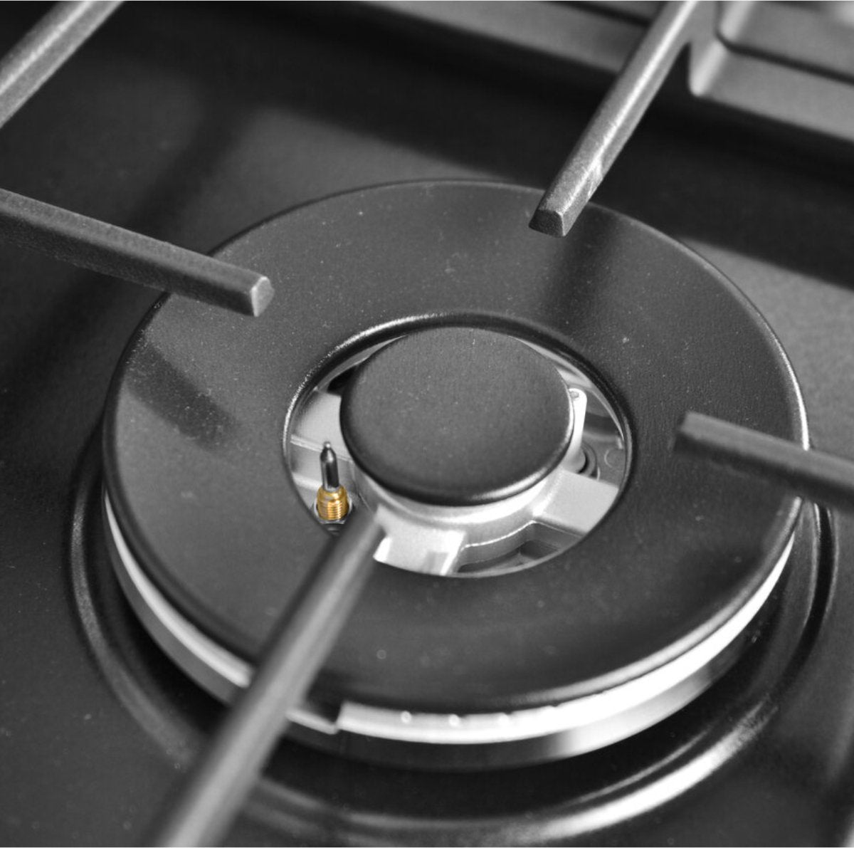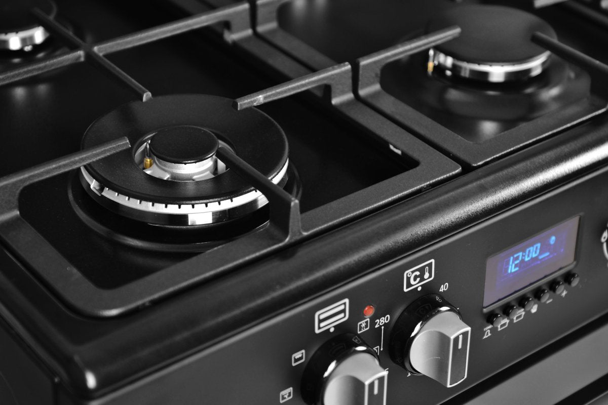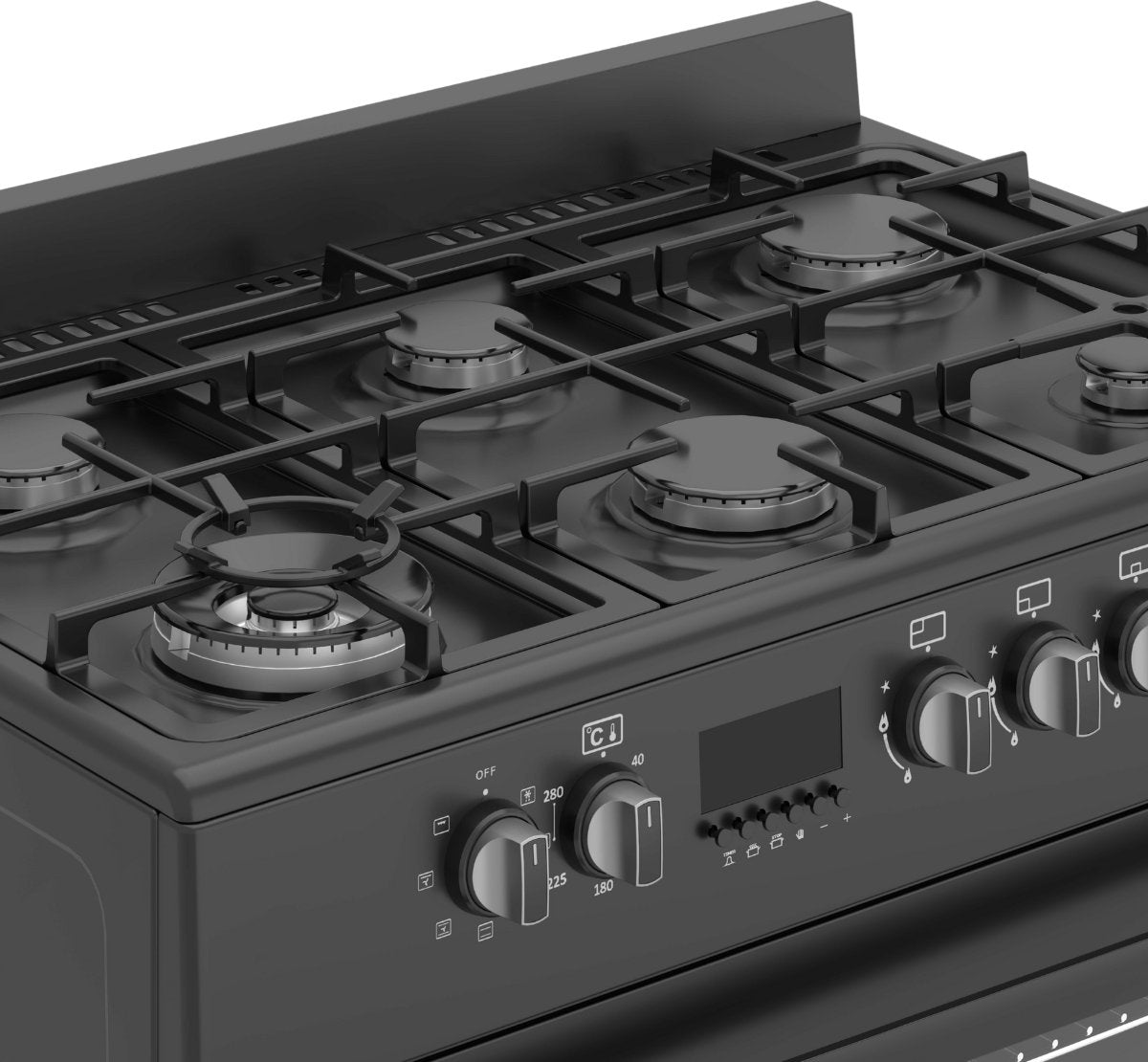 Wiggo WO‑E969R(BB) – Vrijstaand gasfornuis – 90 cm – 6 kookzones met dubbele wokbrander – 110L elektrische oven – Zwart – Elektrische vonkontsteking & vlambeveiliging – Ener