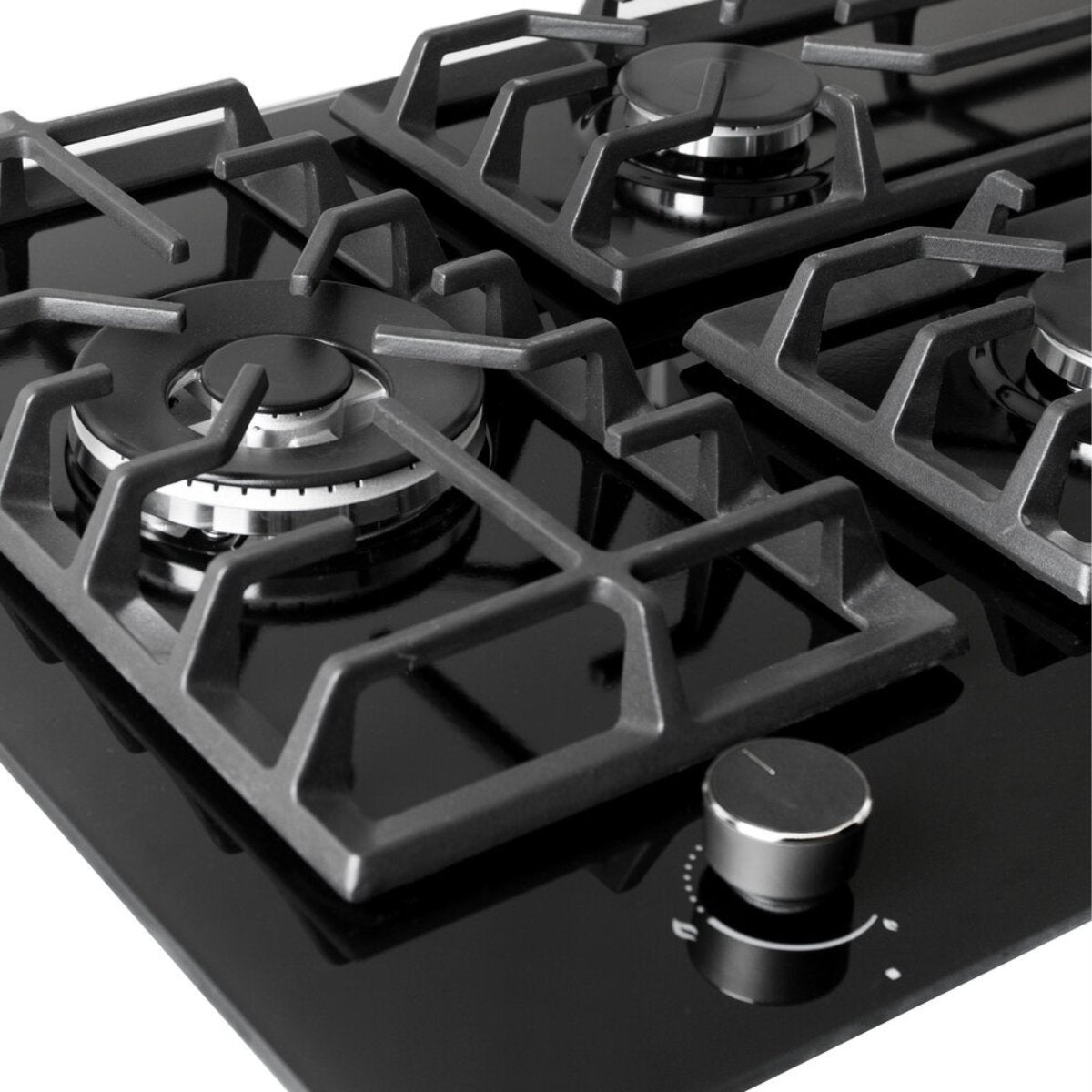 Wiggo WH-G935GR(B) - Inbouw Gaskookplaat - Glas op gas - Wok brander - 90cm - 5 Kookzones - Gietijzeren pannendragers - 5 jaar garantie - Zwart Glas