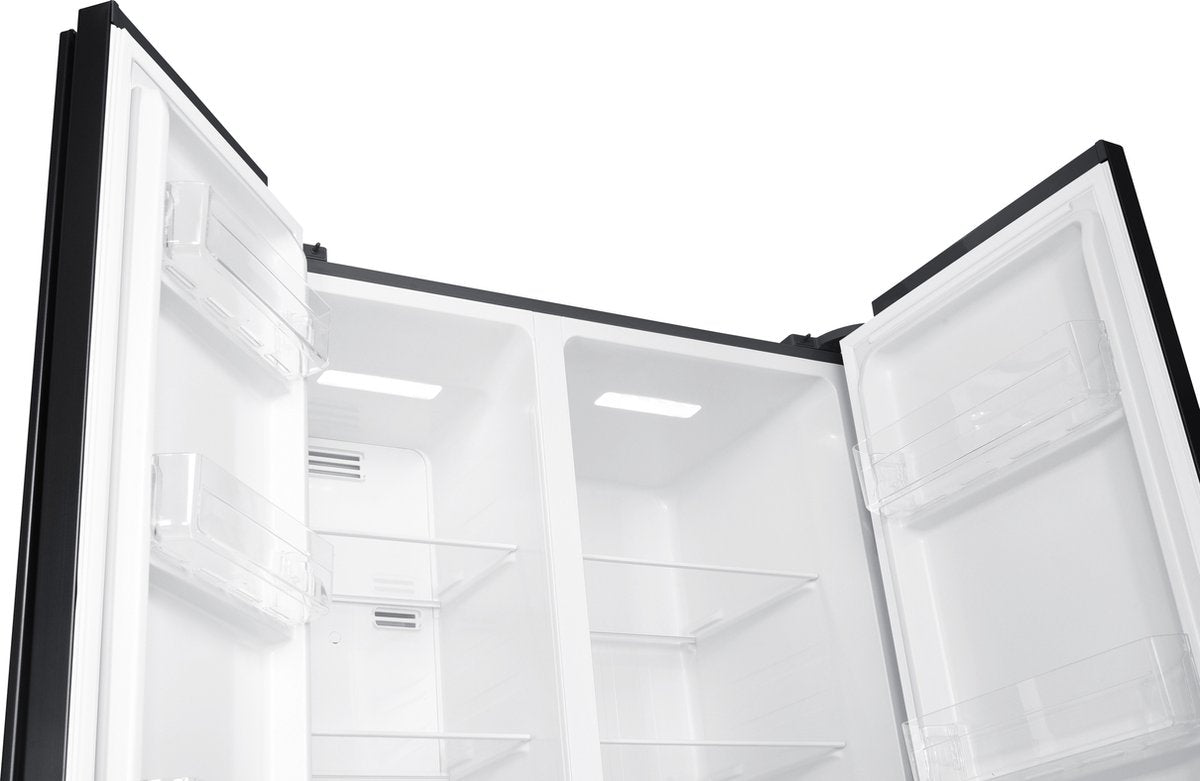 De Wiggo WR-SBS18E(DX) is een stijlvolle en lux afgewerkte koelkast met een Geborsteld zwart look. Een combinatie van een vriezer en koelkast die van alle gemakken is voorzien in één model voor iedere keuken. Daarnaast heeft hij StayFresh, waarbij de luchttemperatuur en vochtigheid optimaal zijn ingesteld in de speciale groenten- en vleesvak. Hierdoor kan je voedsel enkele malen langer houdbaar blijven.De Wiggo WR-SBS18E(DX) koelkasten met vriesvak behoren tot de zeer efficiënte E energieklasse. Het beschikt over een klimaatklasse van N, SN en ST. De Wiggo koelkast heeft een nettocapaciteit van 442 L.