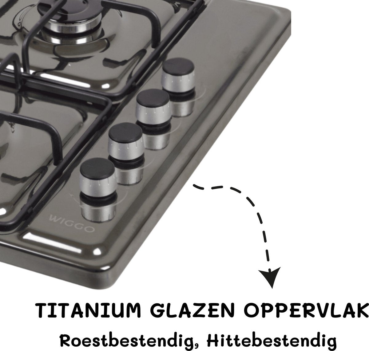 Wiggo WH-G604F(T) – Vrijstaande gaskookplaat – 60 cm – 4 kookzones – Geschikt voor aardgas en butaangas – Thermokoppel beveiliging – Titanium