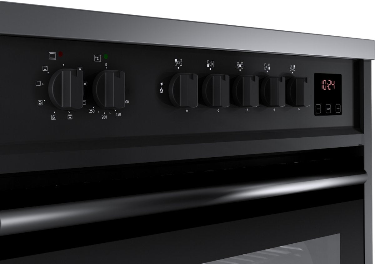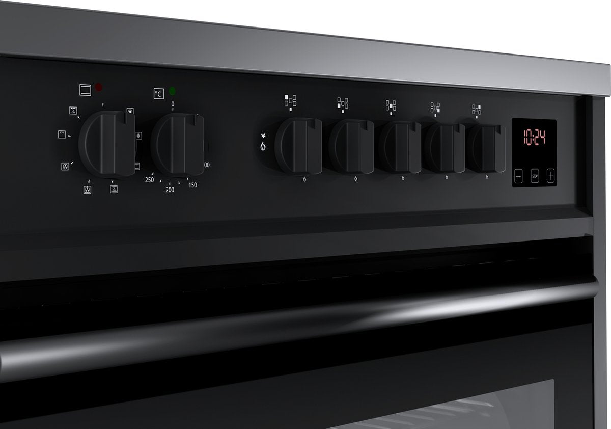 Koeldeur constructie Vrijstaand fornuis Inductiekookplaat zones Voedingsbron oven: Electrisch Zwart, Roestvrijstaal