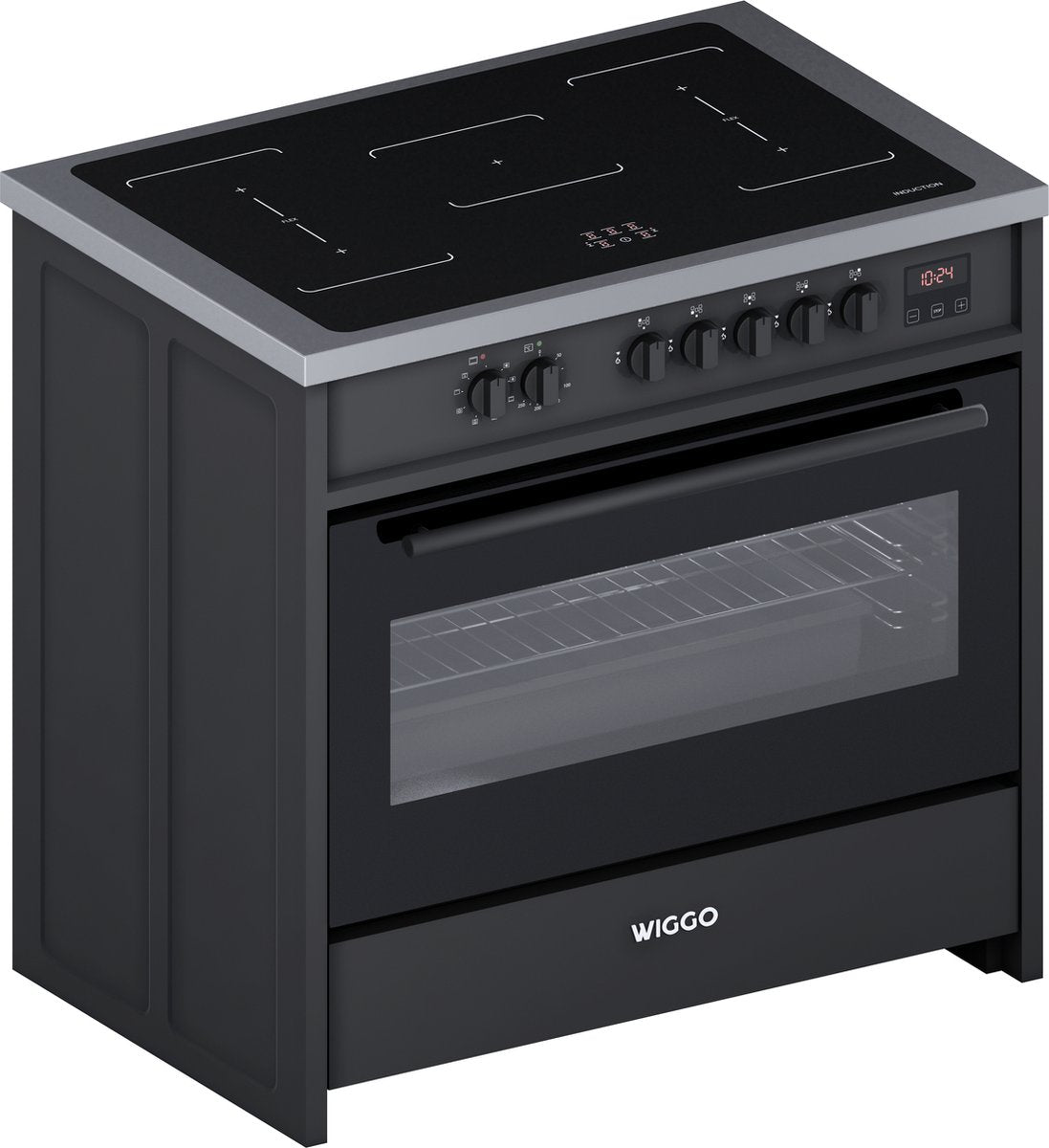 Wiggo WIO-E921A(BX) - Freestanding - Induction - Oven - 90cm - Zwart Inox