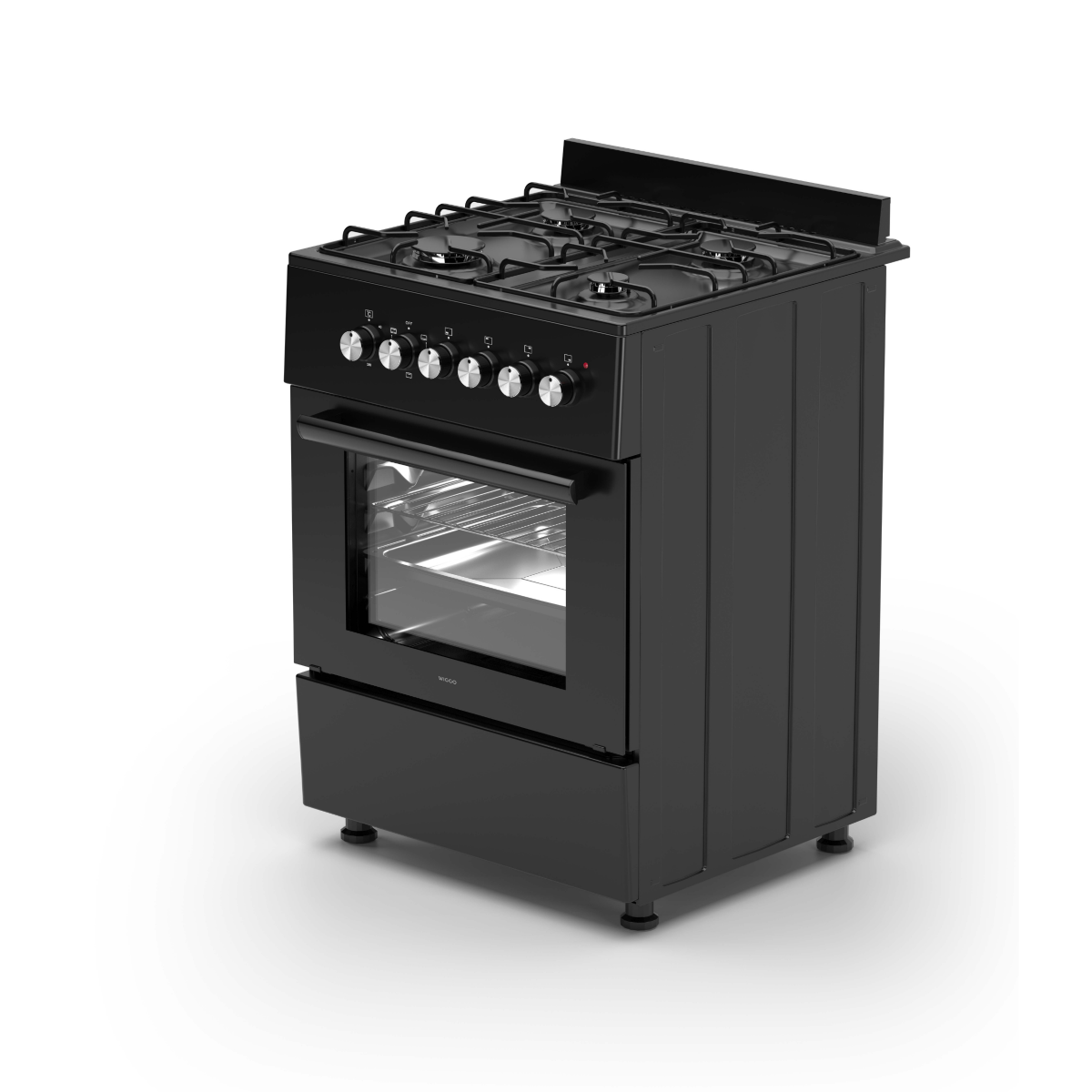 Wiggo WO‑E603R(BB) – Vrijstaand gasfornuis – 60 cm – 4 kookzones – 56L elektrische oven – Zwart – Elektrische vonkontsteking & vlambeveiliging – Energieklasse A – 5 jaar gar