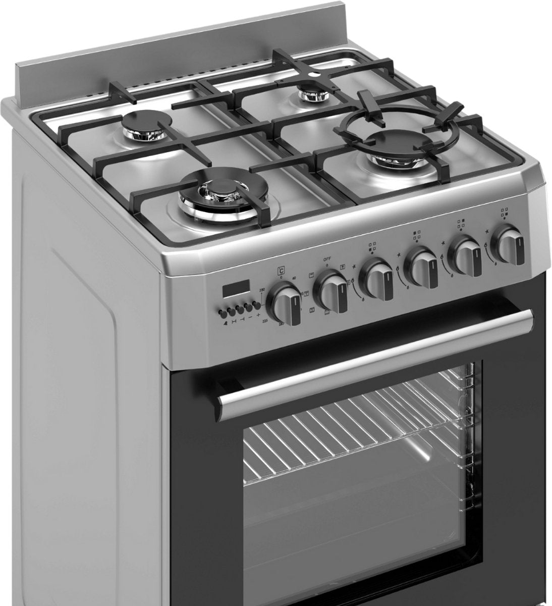 Wiggo WO-E639R(XX) – Vrijstaand gasfornuis – 60 cm – 5 kookzones – met wokbrander – 56L elektrische oven – Roestvrijstaal – Elektrische vonkontsteking & vlambeveiliging – Ener