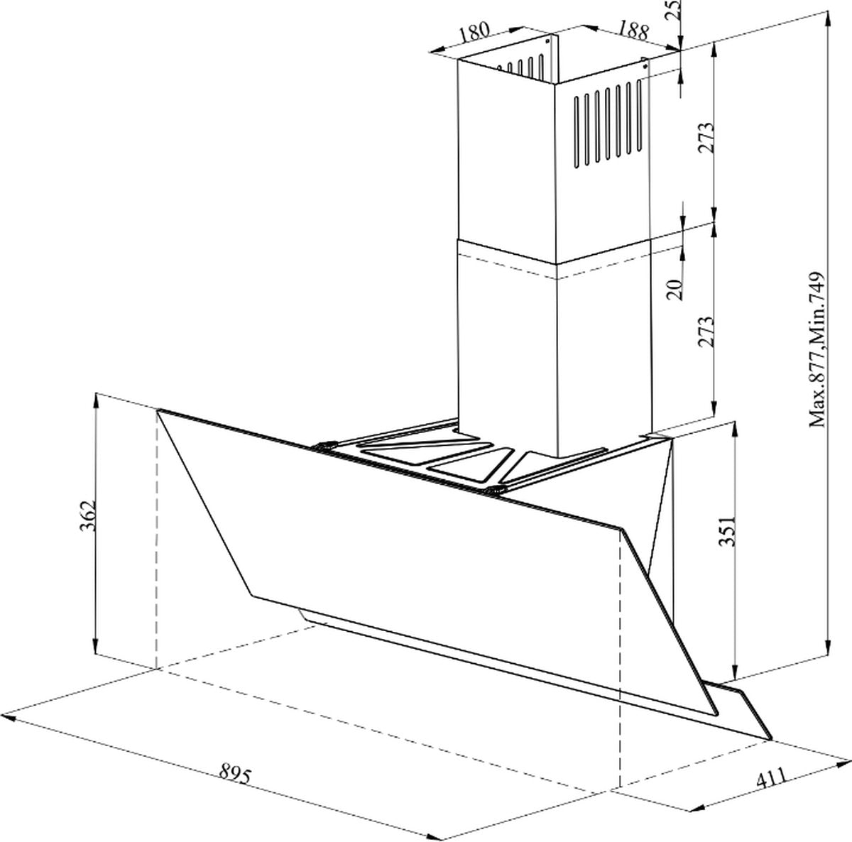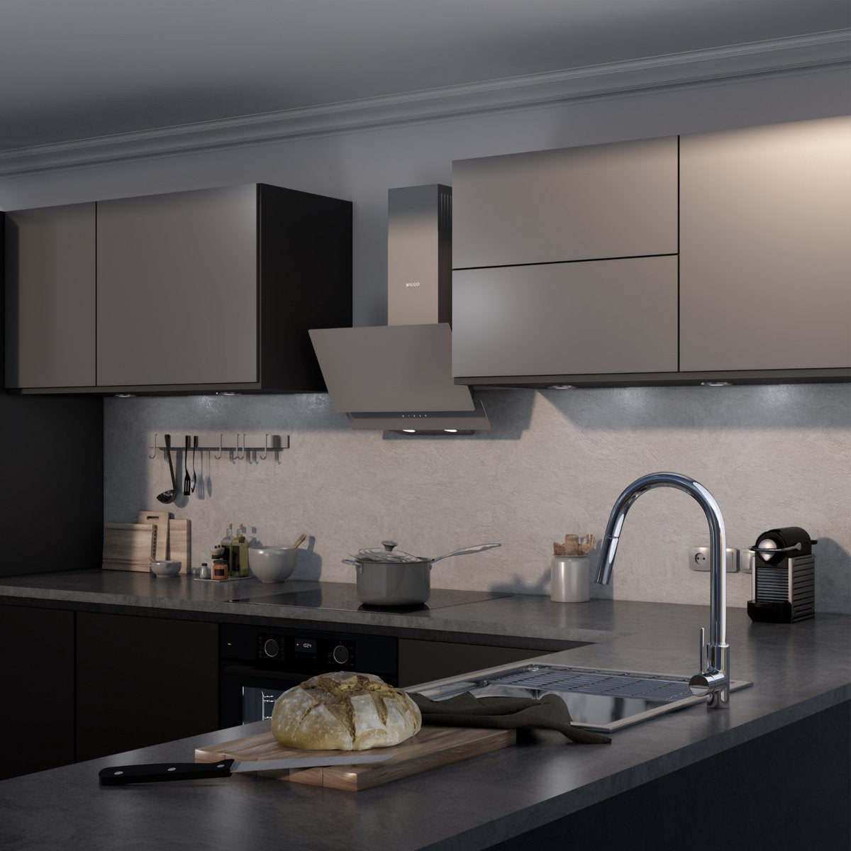 Wiggo WE-A942G(C) Schuine Afzuigkap - 90 cm - Creme