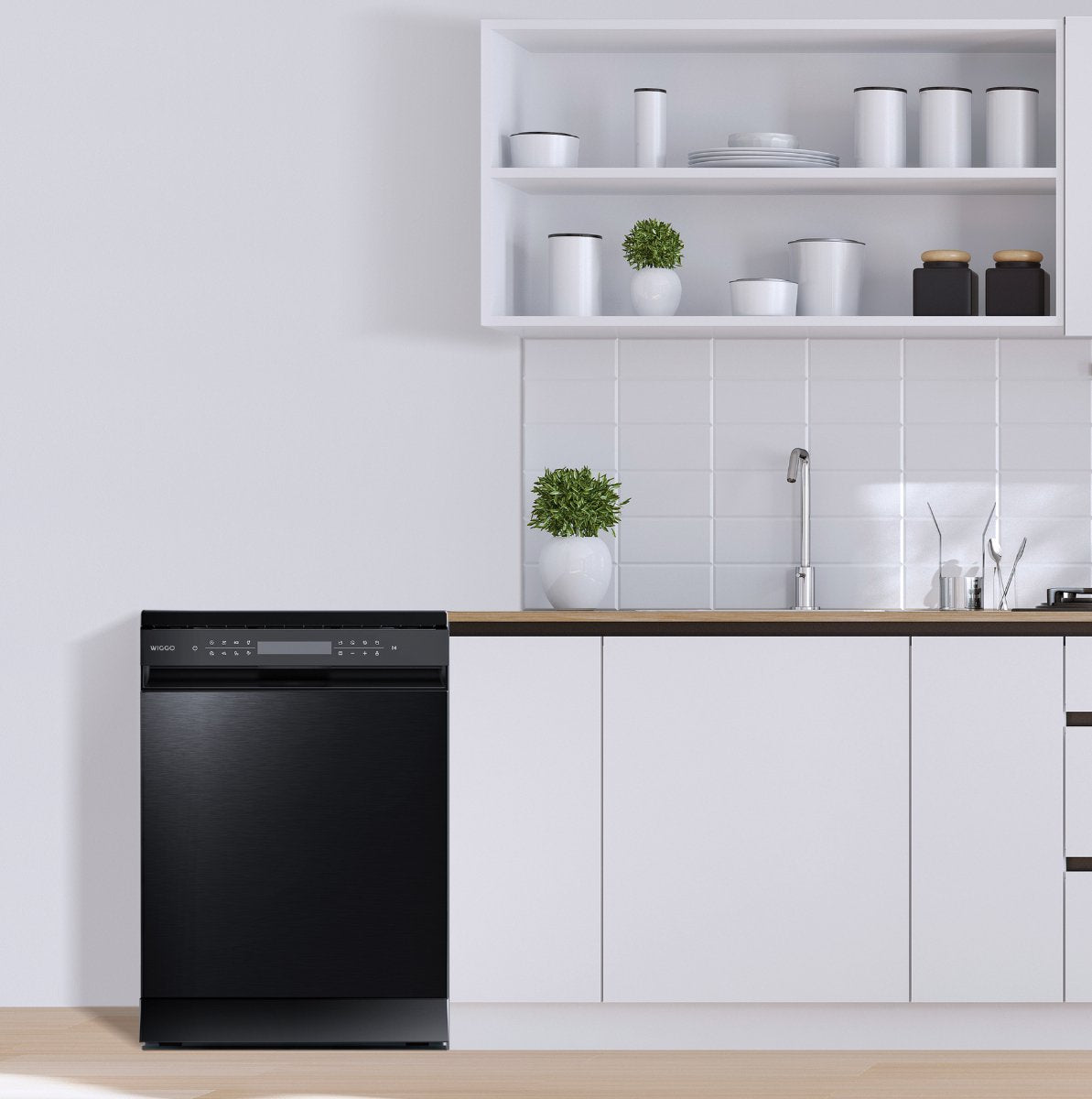 Wiggo WD-F6148B(DX) - Vrijstaande Vaatwasser - 60cm - 14 Couverts - 6 wasprogramma's - Energielabel B - 5 jaar garantie - Zwart Rvs