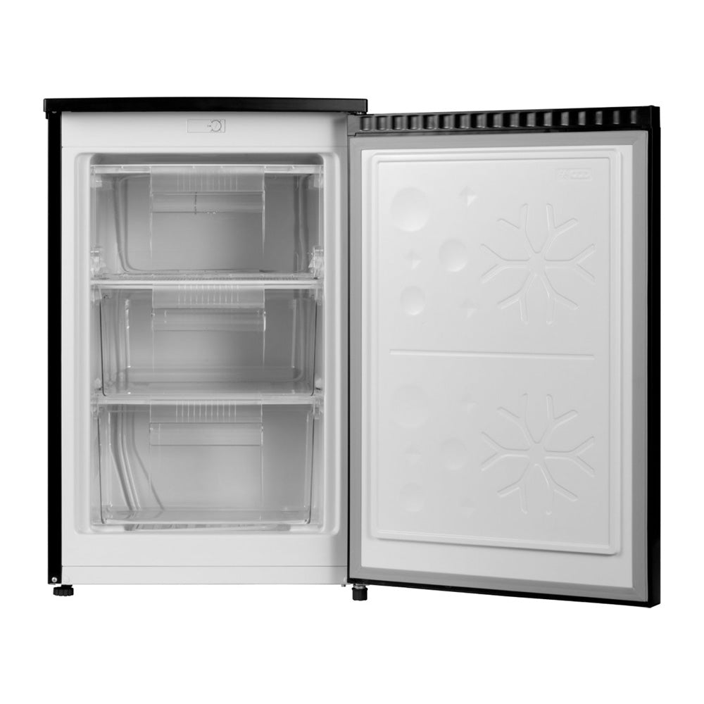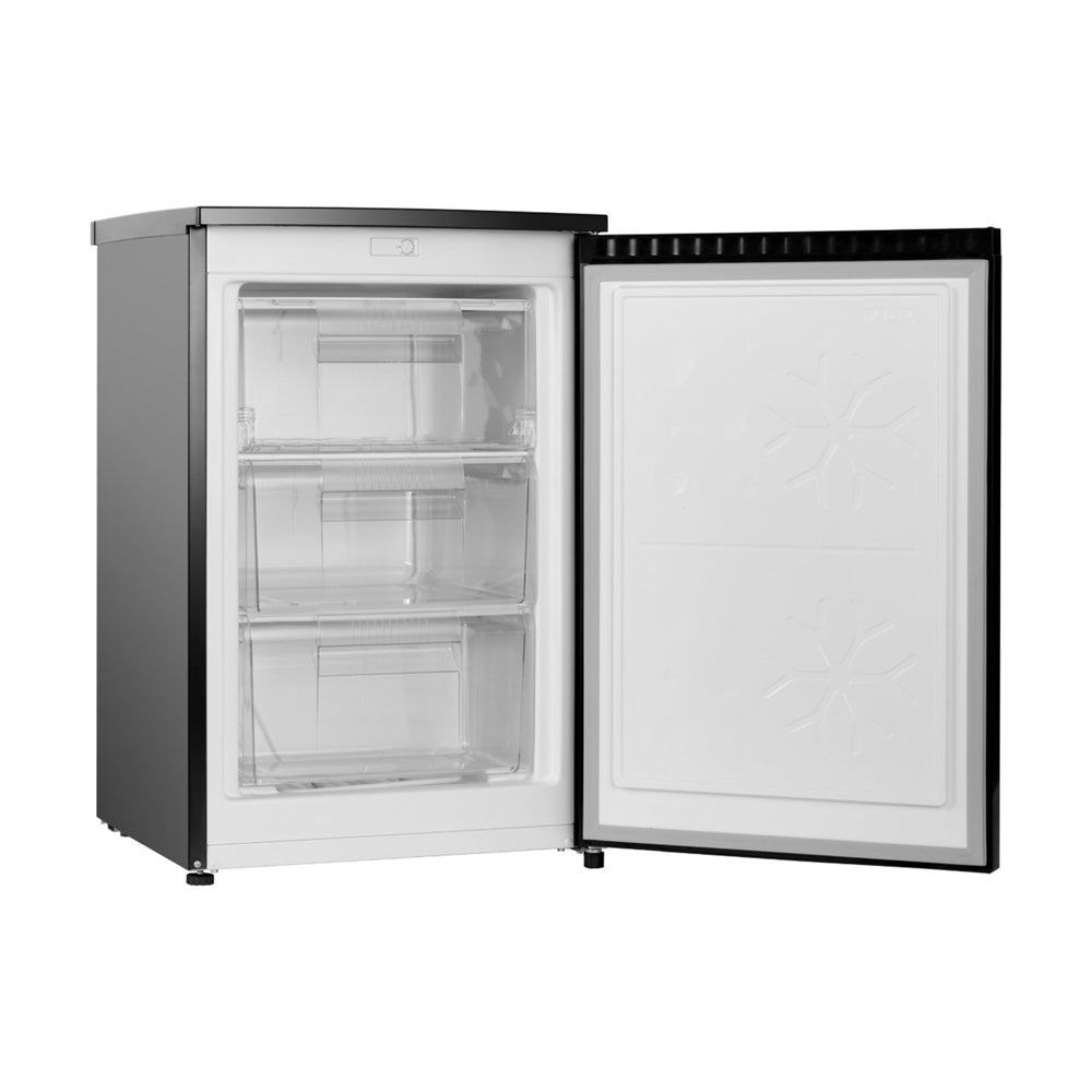 Wiggo WF-TT8D(B) Vrijstaande Tafelmodel Vriezer, een 4-sterren vriezer met een compartiment en 3 laden. Het helpt u bij het gemakkelijk organiseren van de producten in uw vriezer. Bovendien kunt u met de handmatige thermostaat gemakkelijk de temperatuur van de vriezer instellen.