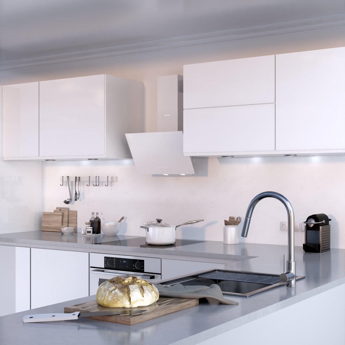Wiggo WE-D531G(W) – Schuine Afzuigkap 50 cm – Wit Glas – LED Verlichting – Touch Control – 5 jaar garantie