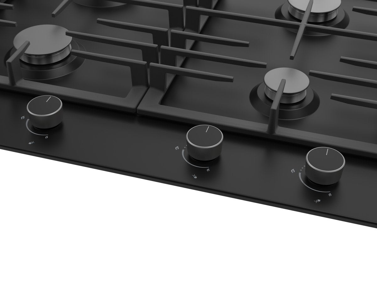 Wiggo WH-G935RR(B) - Inbouw Gaskookplaat - Wok brander - 90 cm - 5 Kookzones - Gietijzeren pannendragers - 5 jaar garantie - Zwart Geëmailleerd