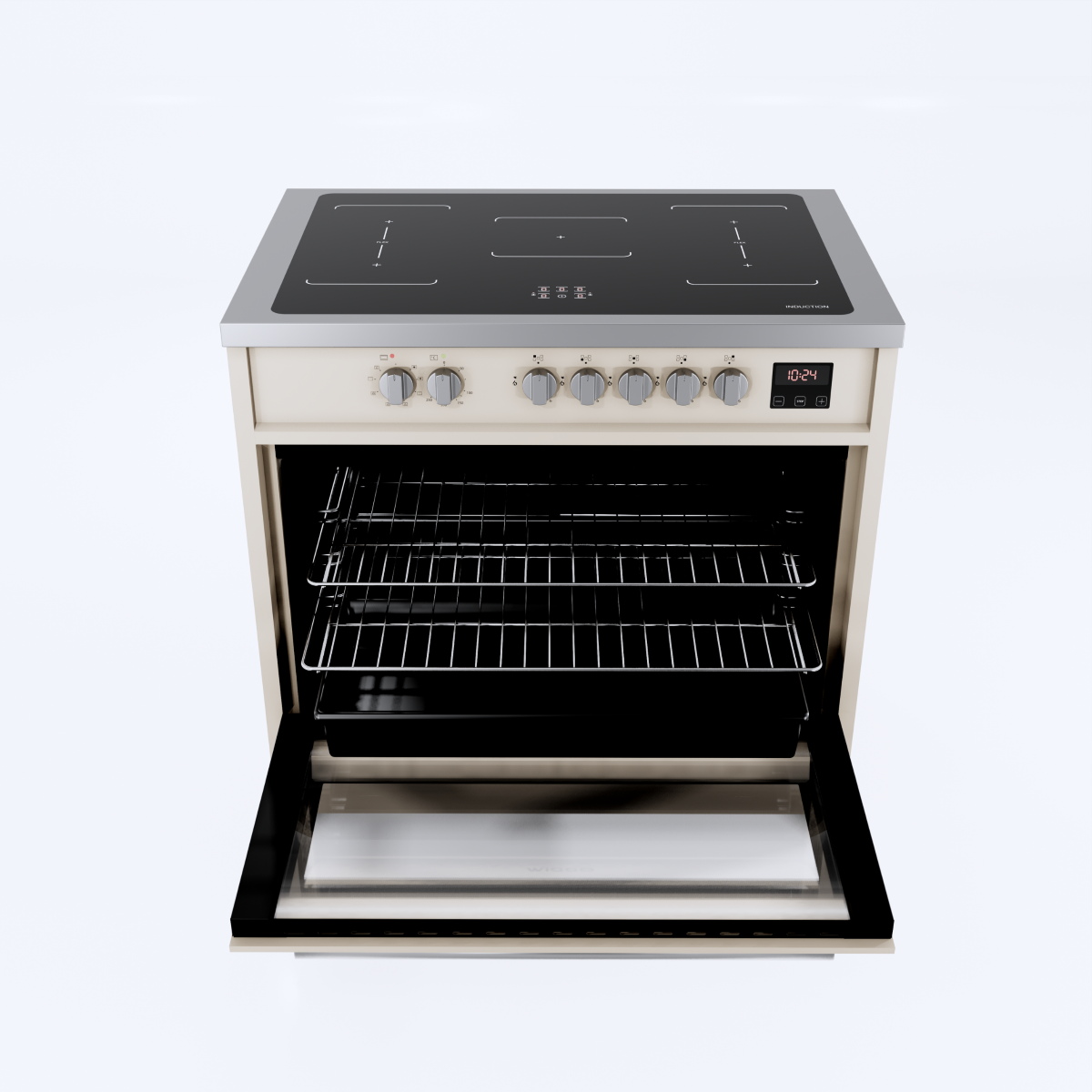 Wiggo WIO-E921A(CX) – Inductie Fornuis – 90 cm – 2 fasen (7.6 kW) – Oven 121L – 50-250°C – Metaal – Crème