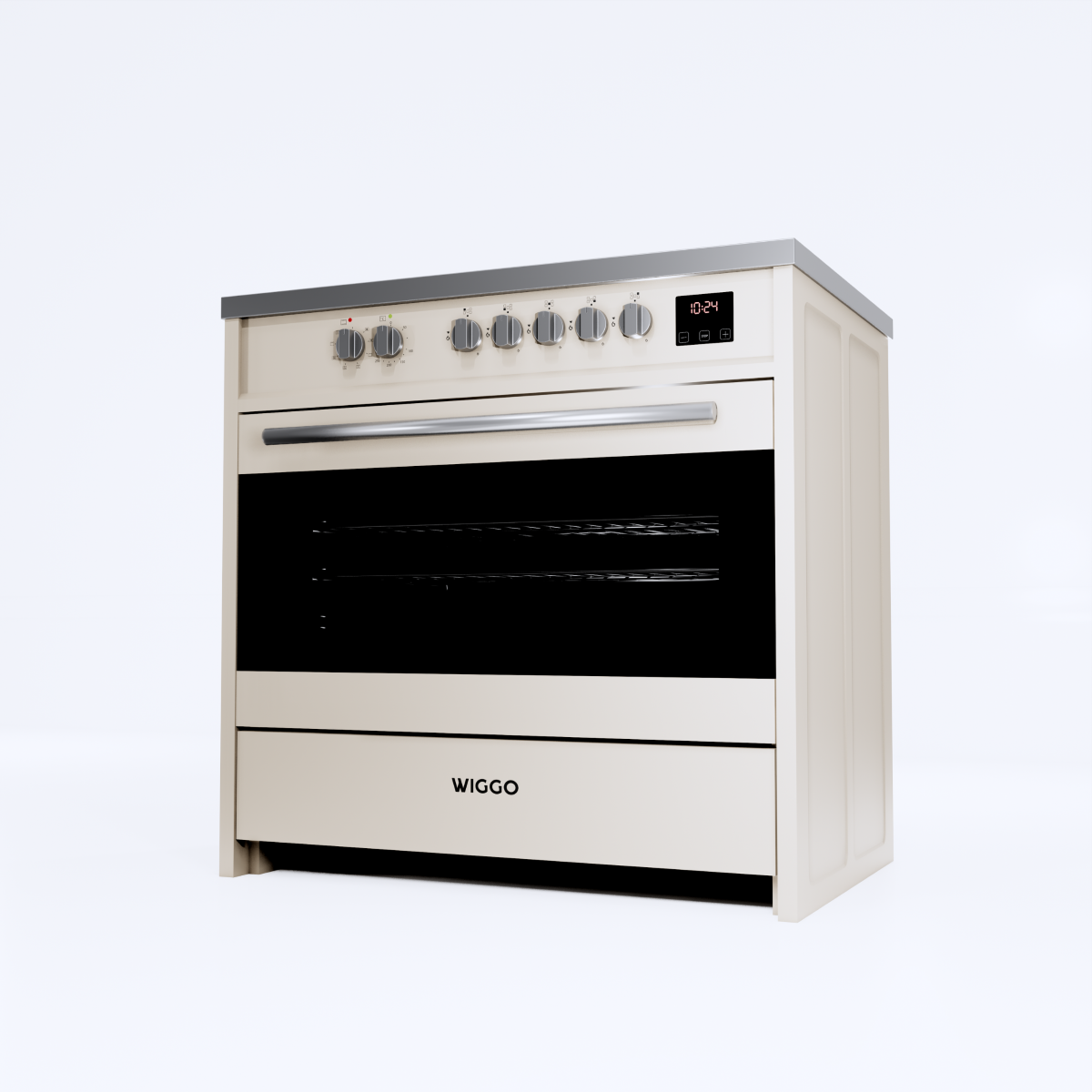 De Wiggo WIO-E921A(CX) is een krachtig en ruim vrijstaand inductie fornuis van 90 cm, ontworpen voor kookliefhebbers die maximale flexibiliteit, precisie en capaciteit zoeken. Met zijn strakke Creme design, brede inductiekookplaat en extra grote oven is dit fornuis ideaal voor gezinnen, hobbykoks en iedereen die graag meerdere gerechten tegelijk bereidt.
