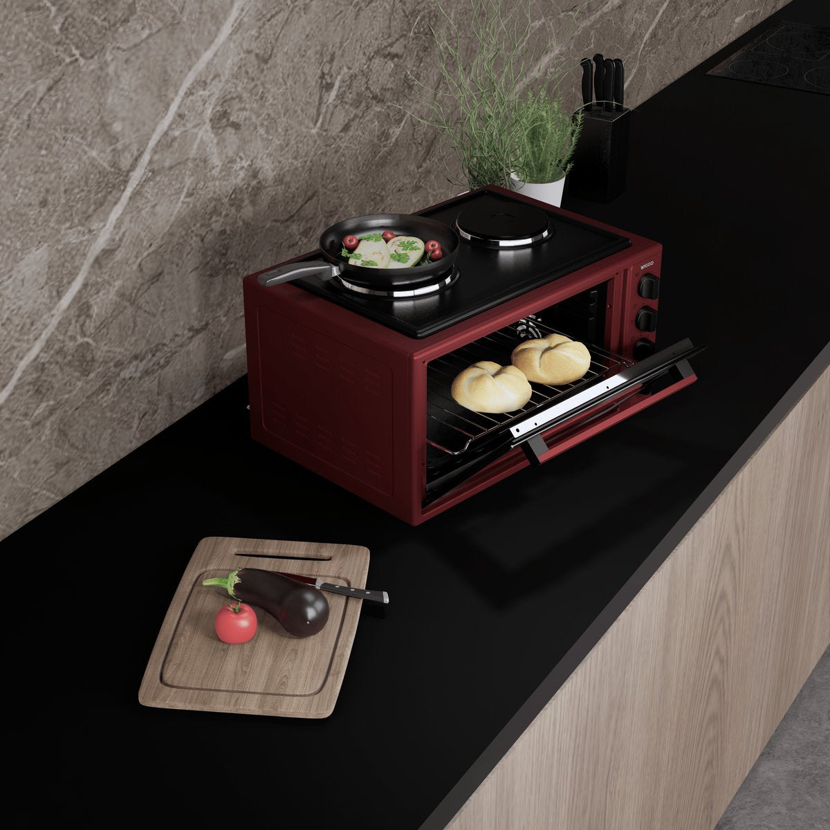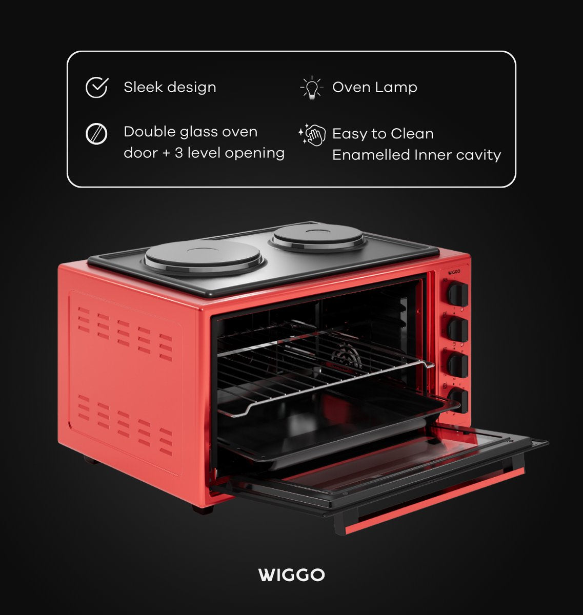 Uw keukenervaring zal van begin tot eind veranderen met de Wiggo WMO-E4562H(R) Vrijstaande Oven en Kookplaat! Dit geweldige apparaat is ontworpen om heerlijke maaltijden te bereiden en biedt u meer controle in de keuken.Maak kennis met onze Mini Oven, een veelzijdig keukenapparaat boordevol indrukwekkende functies om uw kookervaring te verbeteren. Laten we de technische details verkennen die deze oven uniek maken: Bereid een breed scala aan recepten en culinaire hoogstandjes met slechts één apparaat.