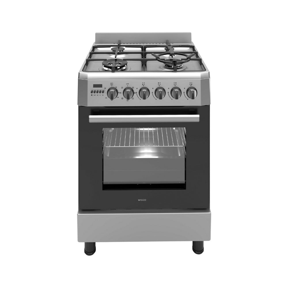 Wiggo - WO-E639R(XX) - Vrijstaand - Gasfornuis - Wok - 60 cm - 66 Liter - 4 pitten - Energieklasse B - 5 jaar garantie - Rvs